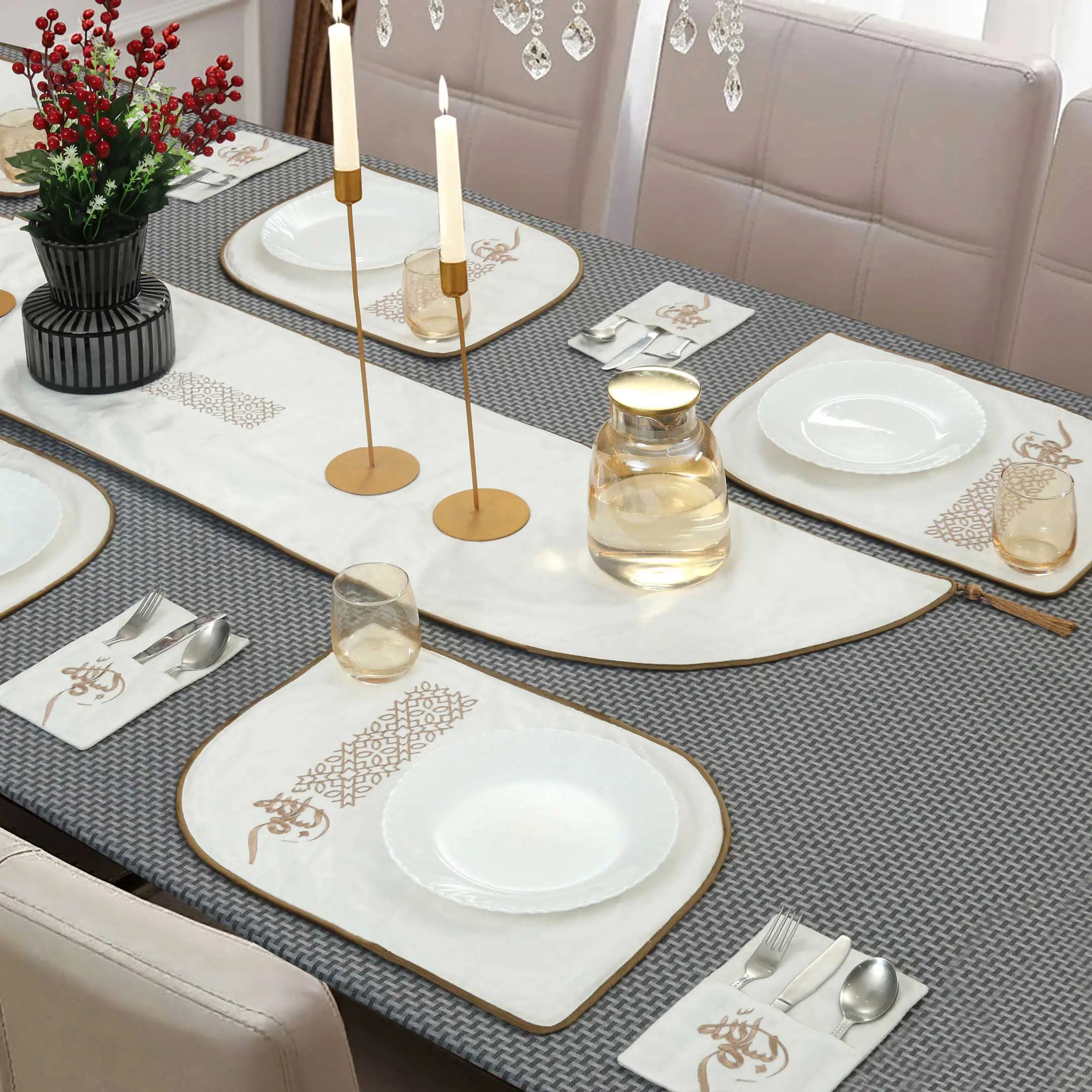 Line Embossed Ultrasonic Quilted Bedspread 6 pcs Set Beige